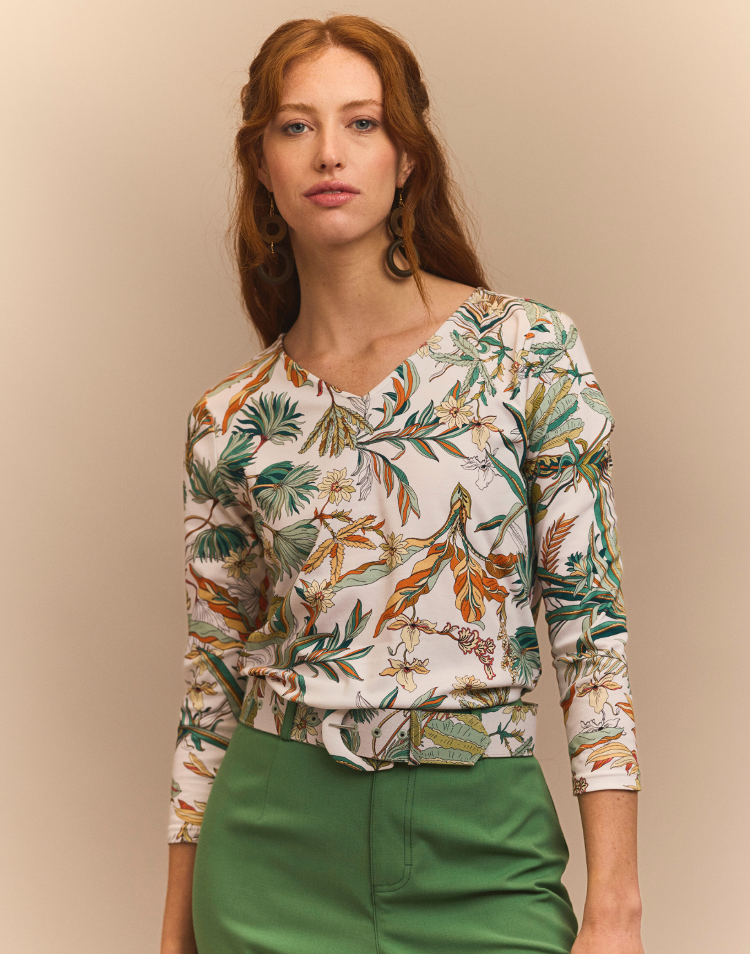 Renee 3/4 Sleeve Amazonian Print Knit Top