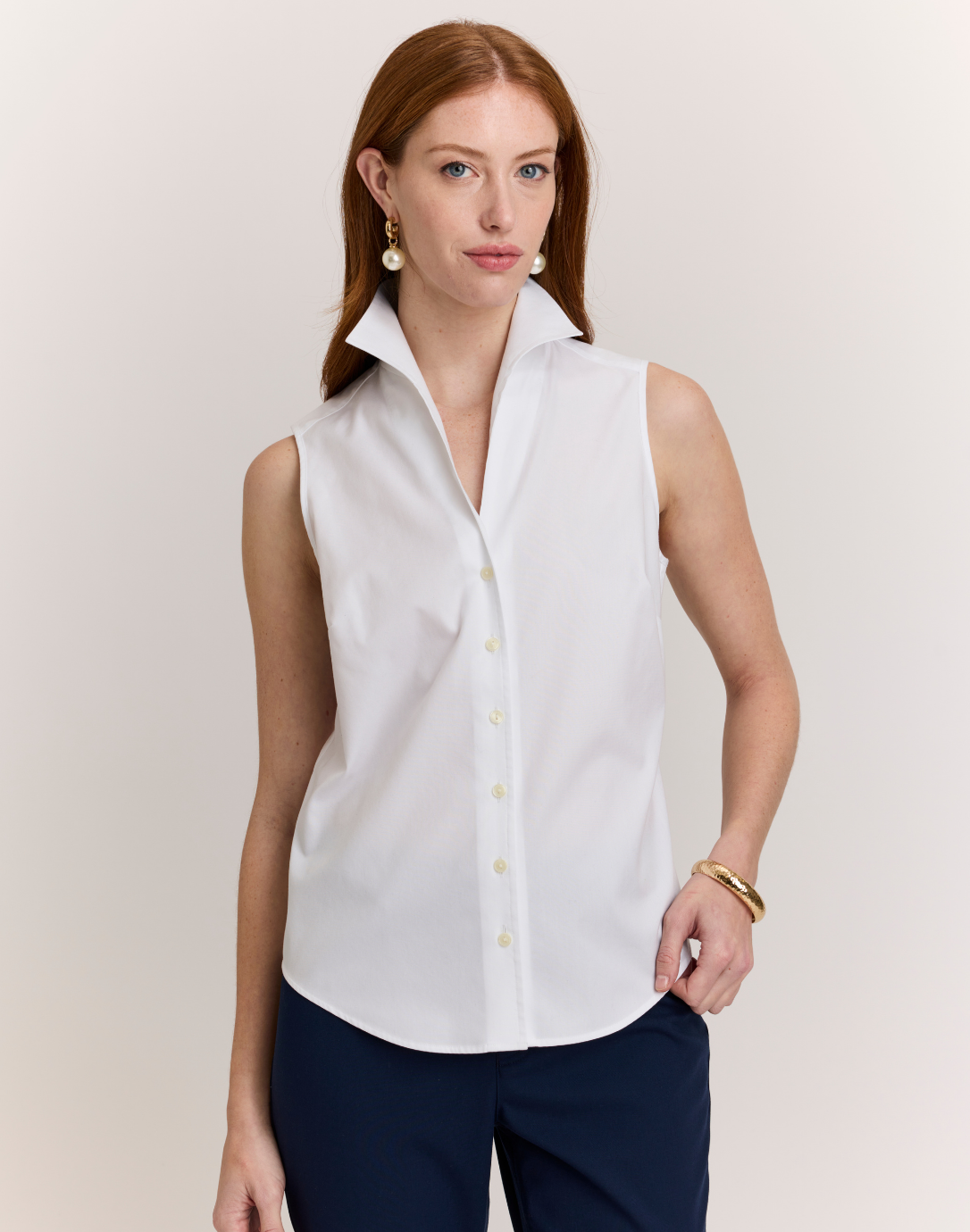 Martha Sleeveless No Iron Luxe Cotton Shirt