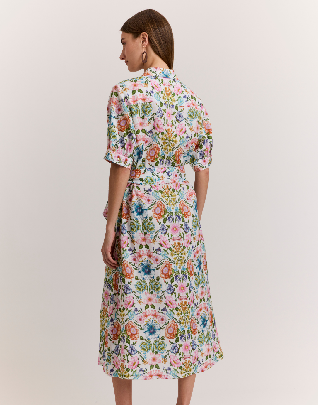 Luca Elbow Sleeve Botanique Linen Print Dress