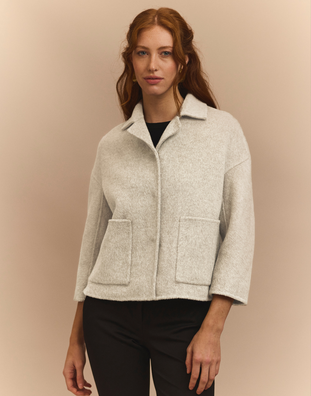 Crafted from a luxurious double-faced blend of wool, silk, and camel hair, this coat offers a refined hand feel with beautiful structure and warmth. Soft yet substantial, it delivers an elegant, timeless look.